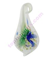 20pcs Blue Gold Sand Flower Lamp Glass Pendant in Flat Drop Shape